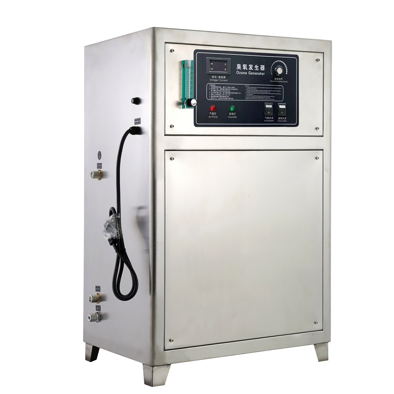 5、先进的电晕放电技术,自动化程度高,优化的机械设计,内置了可编程的单片机模块. 臭氧放电室采用高浓度臭氧管,高浓度臭氧发生器的关键,能最大程度的发挥电源系统和冷却系统的功能,水冷结构保证放电体不会出现高温高热,产生臭氧浓度稳定,设备故障率降低。机械设计结构紧凑,低能耗,放电体耐电击,使用稳定,寿命长,设备体积小,浓度高。